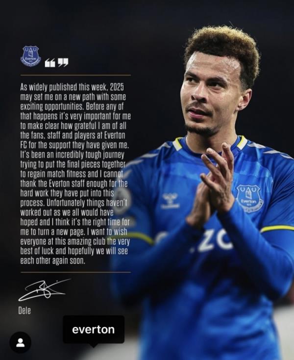 阿里告別埃弗頓:是時候開始新篇章了,感謝所有人對我的支持